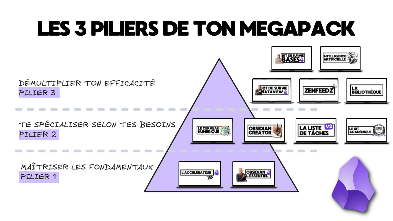 Soyons clairs : Le Megapack, c'est l'encyclopédie complète pour maîtriser Obsidian. Si tu veux juste une petite introduction, ce n'est pas le bon produit pour toi.