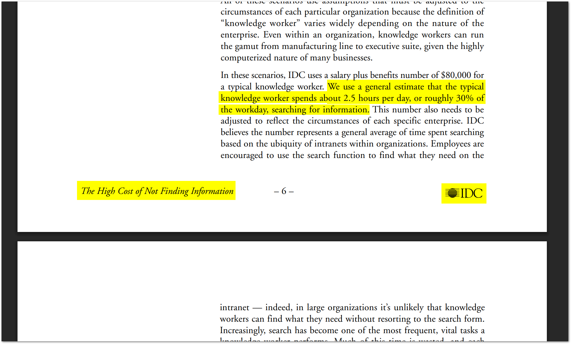 Selon l'International Data Corporation, les travailleurs de la connaissance passent 26% de leur temps à... CHERCHER des informations.