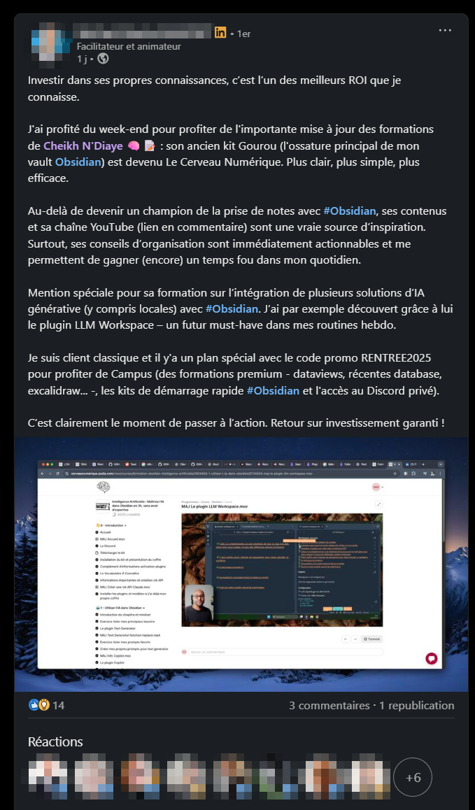 Aujourd'hui, tu as l'opportunité d'accéder à l'intégralité de mon savoir sur Obsidian et le PKM.